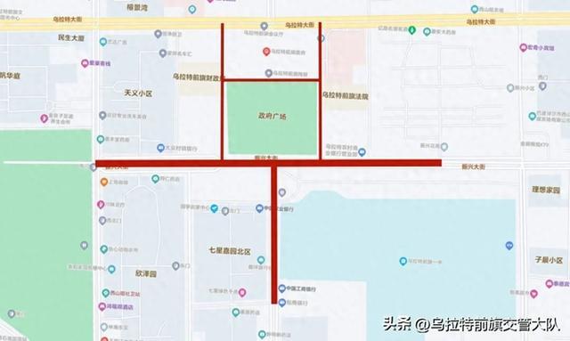 为确保焰火晚会期间道路安全畅通有序,根据《中华人民共和国道路交通安全法》等有关法律法规规定,乌拉特前旗交管大队结合活动实际现将活动期间实行临时交通管控路段、路口通告如下:一、管控路段: 1.振兴大街与民族路交汇处(一中红绿灯灯控)至振兴大街与红旗大街交汇处(林海公园东门红绿灯灯控)。